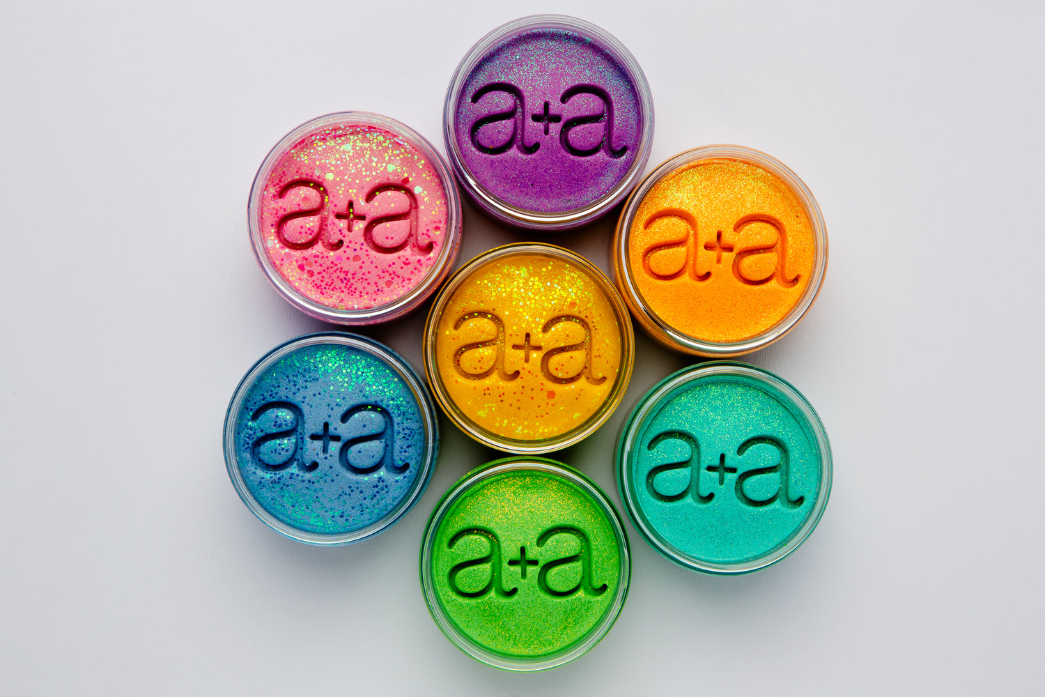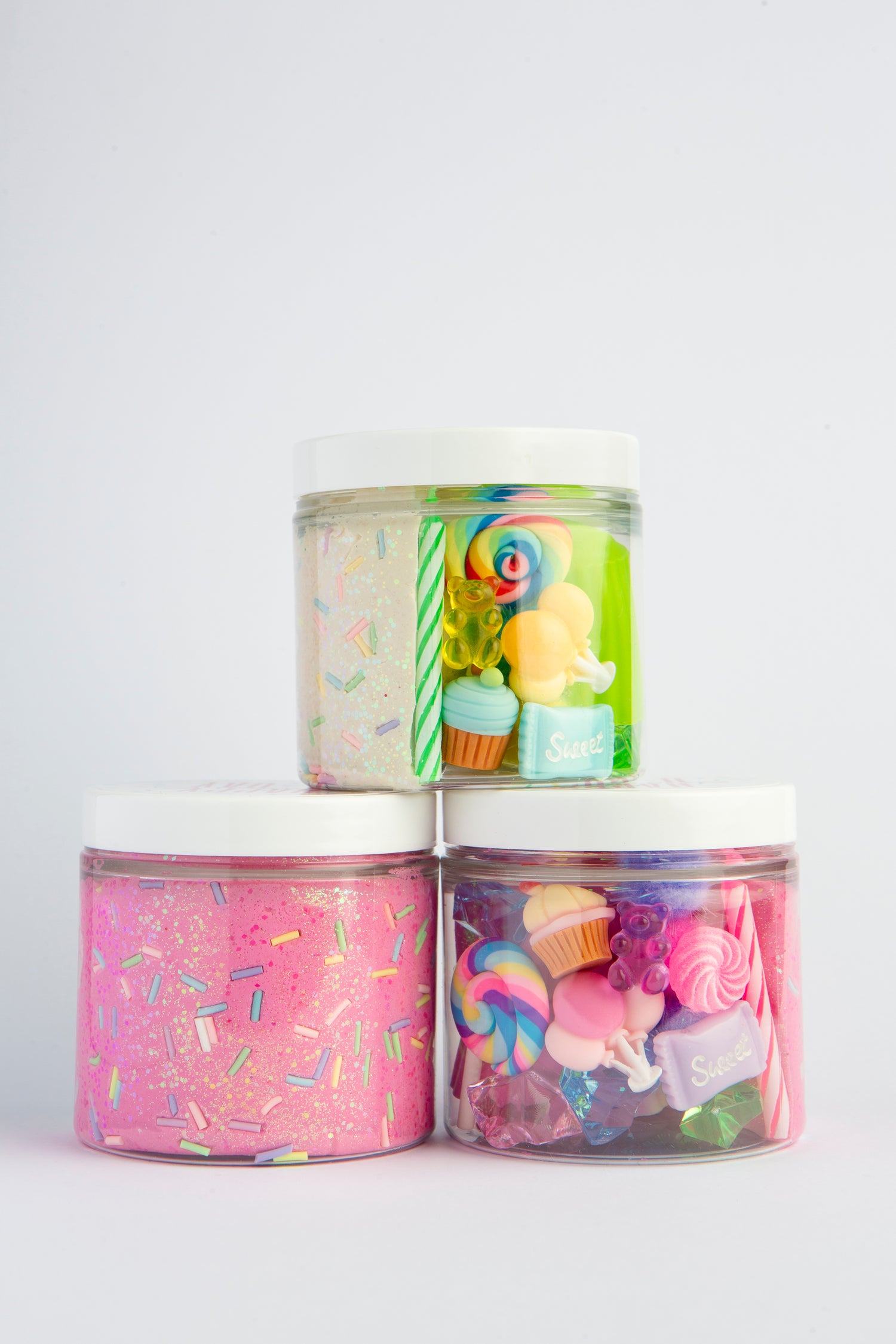 Botecito de 130 g. de masita sensorial con aceites esenciales que huelen delicioso. La masita puede ir con o sin glitter.